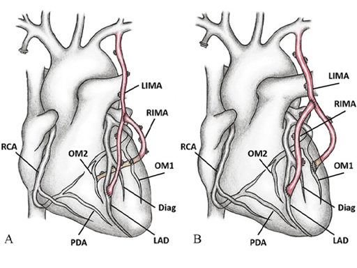 LIMA-RIMA Y (Left Internal Mammary Artery-Right Internal Mammary Artery Y) cardiac surgery is a type of coronary artery bypass grafting (CABG) that uses both the LIMA and RIMA arteries as blood vessel grafts to bypass blocked arteries in the heart, forming a Y-shaped configuration. This "total arterial revascularization" method is favored for its long-term patency rates and superior results compared to traditional vein grafts, providing a more durable blood supply to the heart.